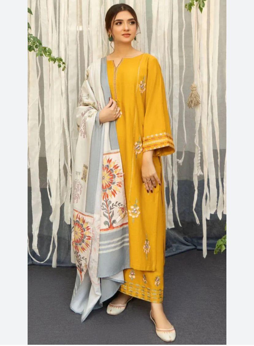 ✨ Embroidered full front & sleeves✨ Plain dyed back✨ Plain dyed trouser✨ Printed shawl